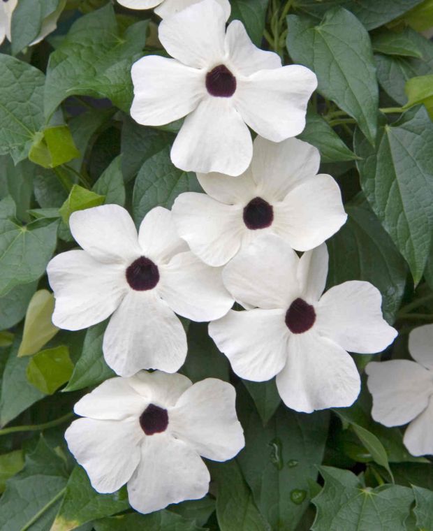 Kiiresti kasvav, valgete kroonlehtede ja musta südamikuga ronitaim, suve jooksul kasvatab ohtralt õisi. Kõige intensiivsema õievärvi saamiseks istutada päikesepaistelisse kohta.  Lill sobib amplitesse, lillekastidesse, kõikjale kus saab rippuda või ronida. Muld peab olema viljakas vett läbilaskev.